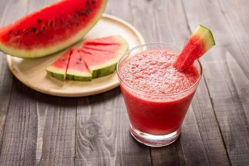 3. 西瓜汁:将西瓜切成小块,放入榨汁机中,加入适量的冰块和蜂蜜,搅拌均匀即可。